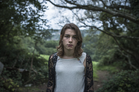 Mélanie is posing with her boyfriend, her father, her step-mother and her sister. She's in the middle of a sexual reassignment. She is highly supported by her family, her friends and her boyfriend. She accepted to participate in this project as an activist gesture to put in the light the life of transgender people.