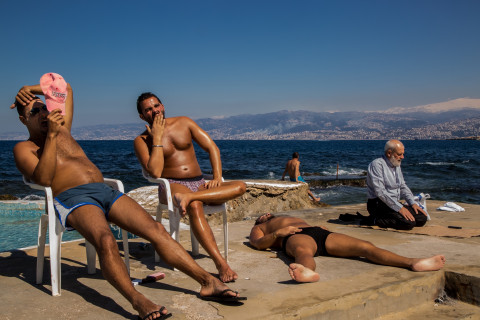 This photo story series explores the sunbathing community of the American University of Beirut Beach, Lebanon, located beside the Corniche, a famous seaside promenade in downtown Beirut.